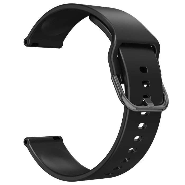 dây đeo đồng hồ silicone phổ biến với khóa gài cổ điển (pin-and-tuck buckle). Loại dây đeo này được sử dụng rộng rãi cho nhiều thương hiệu đồng hồ thông minh và đồng hồ truyền thống khác nhau, miễn là chiều rộng vấu (lug width) phù hợp với kích thước dây đeo (thường là 20mm hoặc 22mm).