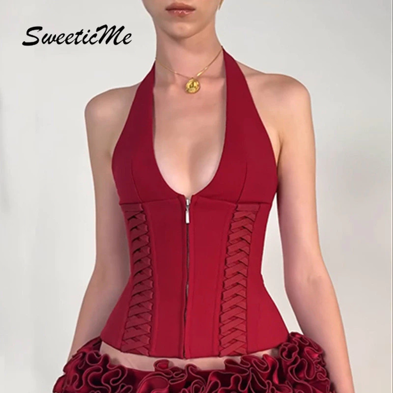 Áo Camisole Nữ 2025 Thời Trang Màu Trơn Gợi Cảm Nách Eo Lưng Dây