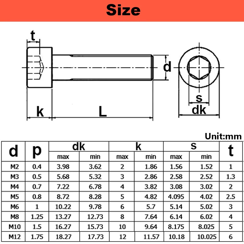 Kích thước: Đường kính ren (D) * Chiều dài ren (L)